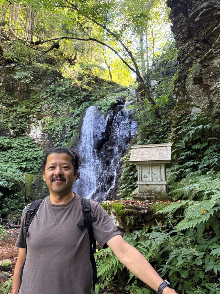 昇龍の滝に着くと、いい感じに日が翳り、しばしここで座ってました。
