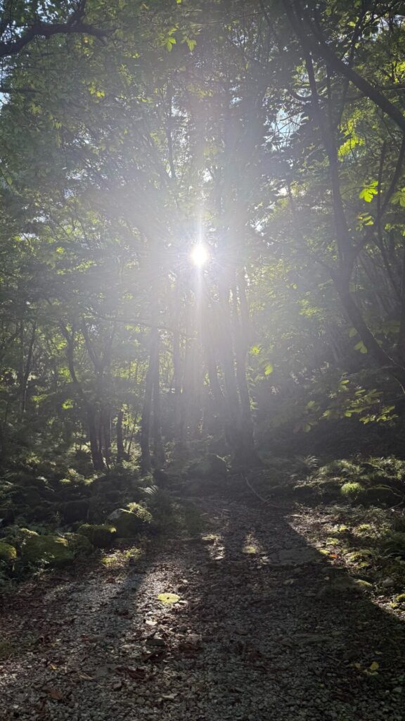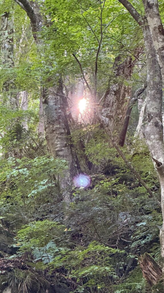 森の木々や苔や水にさす、光の奇跡を見せられながら、賑やかに歓迎してもらい、日が傾くまでこの森に居ました。