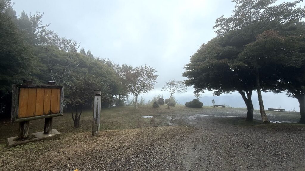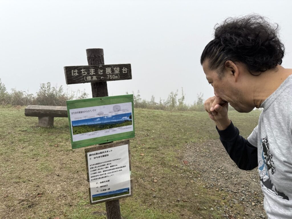 小雨のような霧雨に、展望台より先に行くのは危険だし、そろそろ引き返そうか?