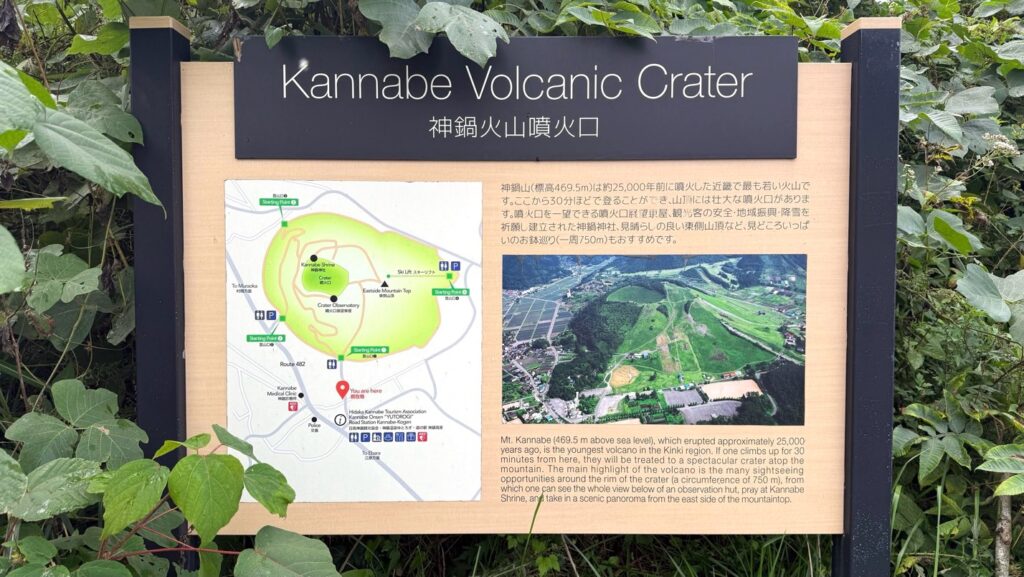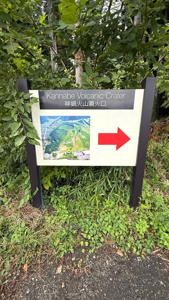 コーヒーを飲みながら、駐車場を散策していると???奥に続く道を発見!犬の散歩の方が帰ってくる風景が見え、立て看板から火口への散歩道のようなので、気軽に行ってみたのです。