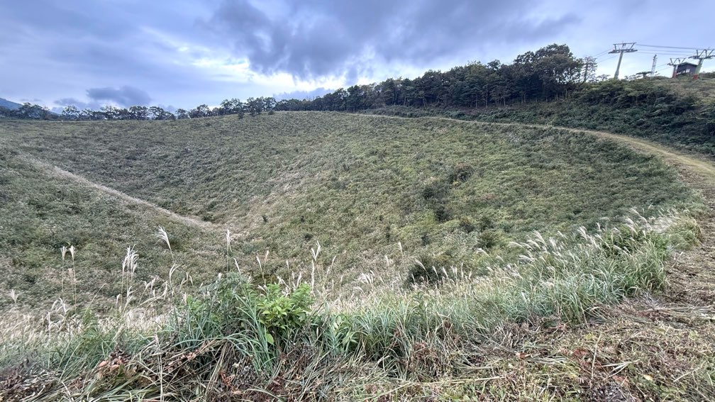 冬はスキー場になる高原は、なだらかに火口に向かって登って行けます。