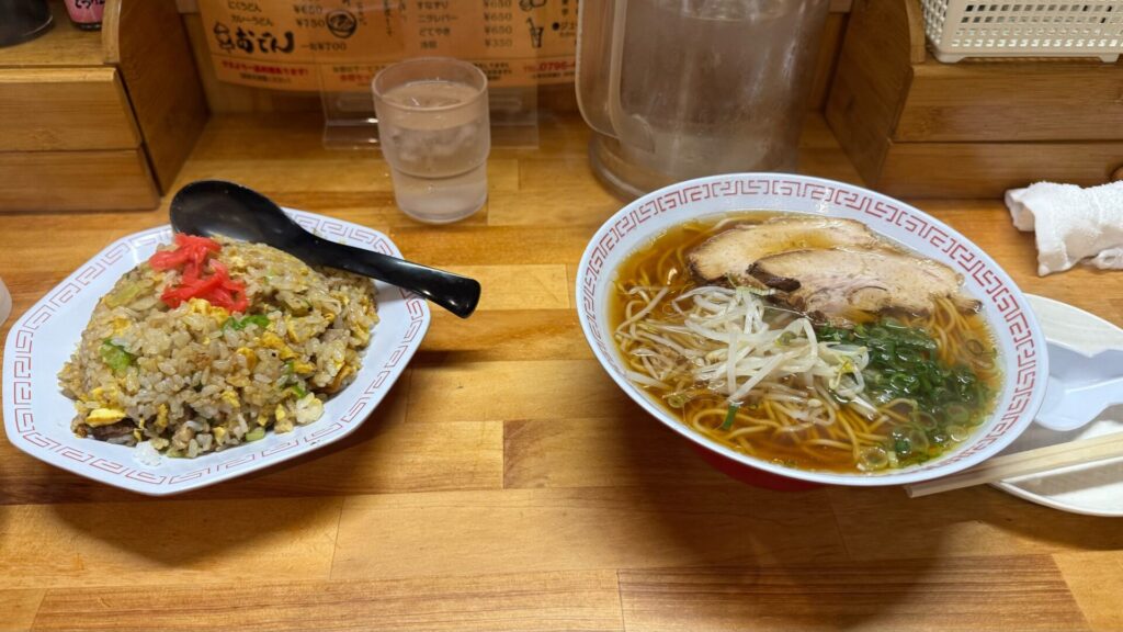 近くの「かどや食堂」で、醤油味が香ばしいラーメンとチャーハンに大満足!