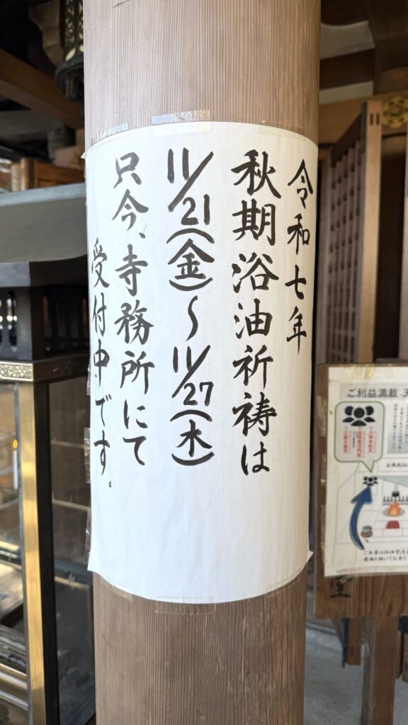 これは今日は、本堂の毘沙門天さんにお詣りするのは諦めることにしようと、阪神ファンでひしめき合う本堂の踊り場を眺めながら、思ったのでした。